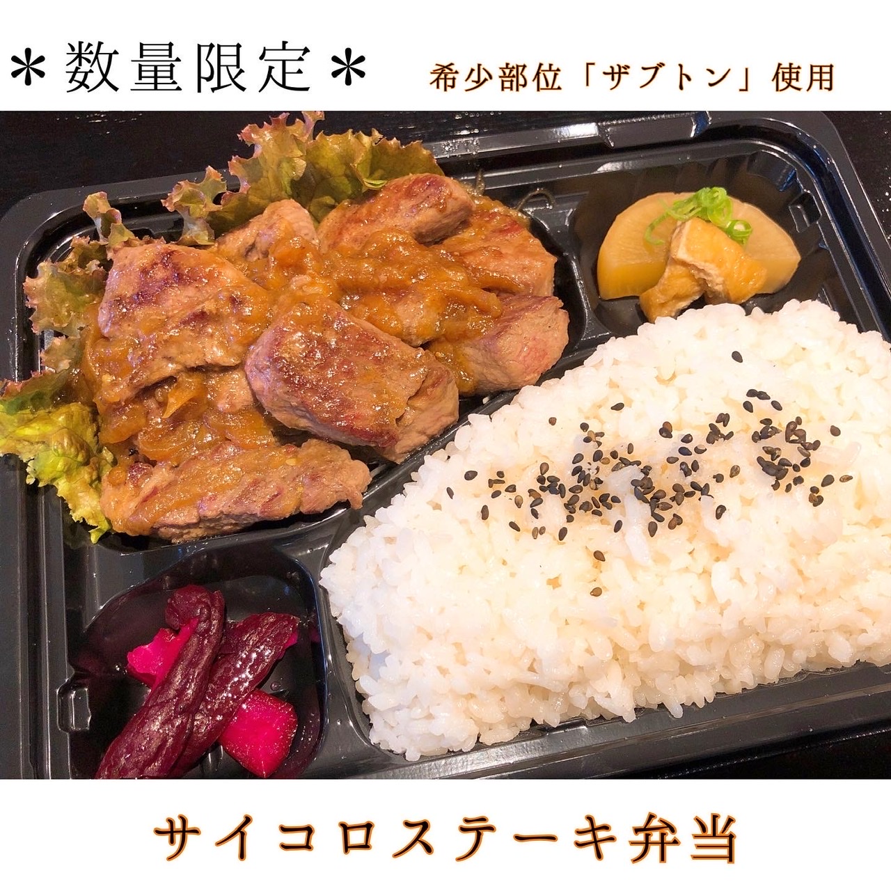 希少部位ザブトンを使った「サイコロステーキ弁当」を販売致します☺️💕