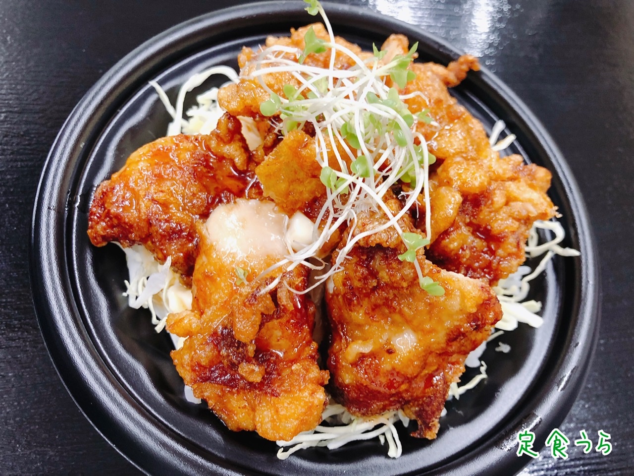 マヨネーズは上にかけて蓋をするとベッチャリしてしまうので唐揚げの下にかけてます♪